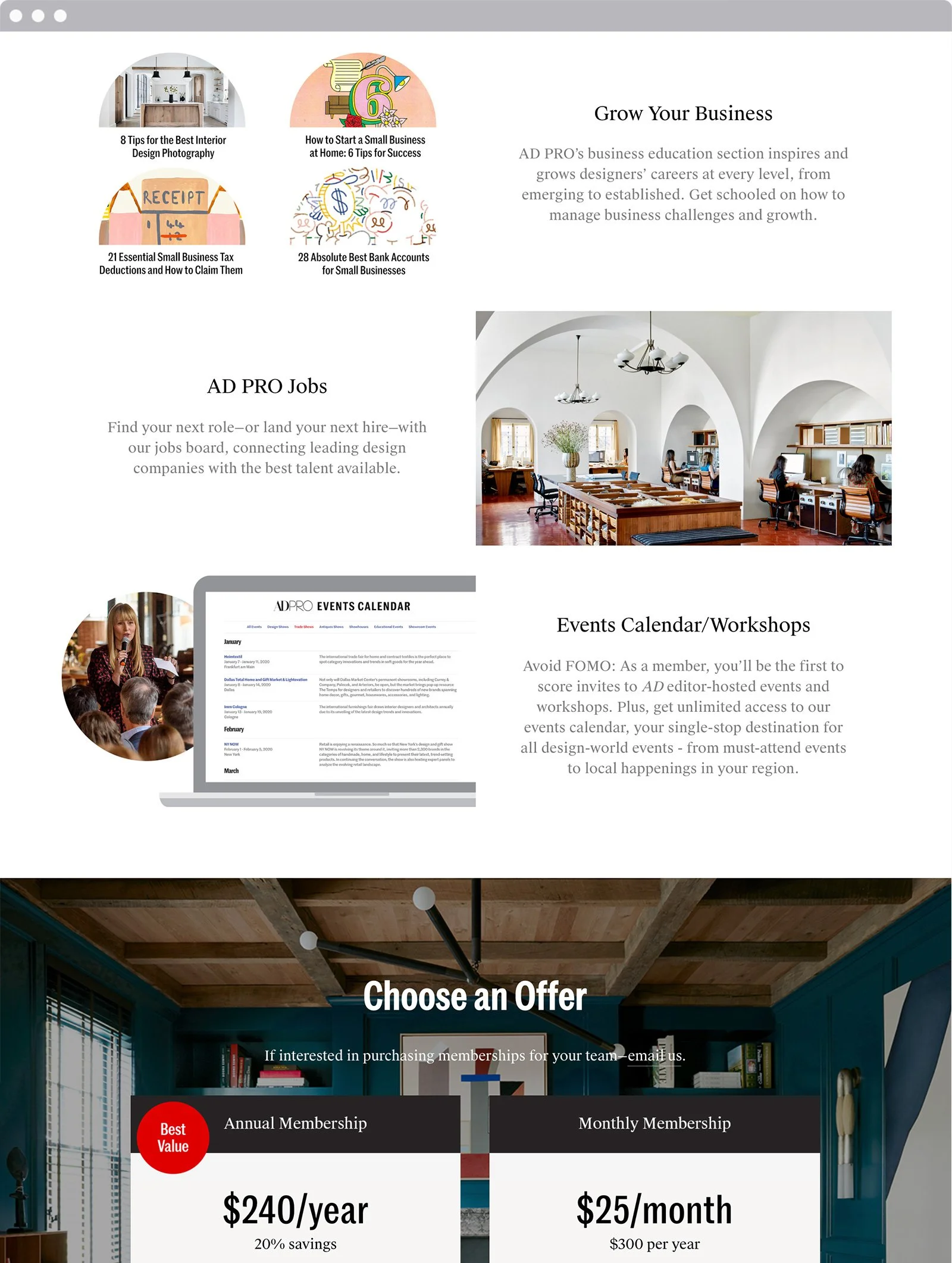 The editors at Architectural Digest (AD) noticed there was a real need in the market for industry professionals to get tricks of the trade, archival content and access to in-depth reporting for a shared community of professionals.