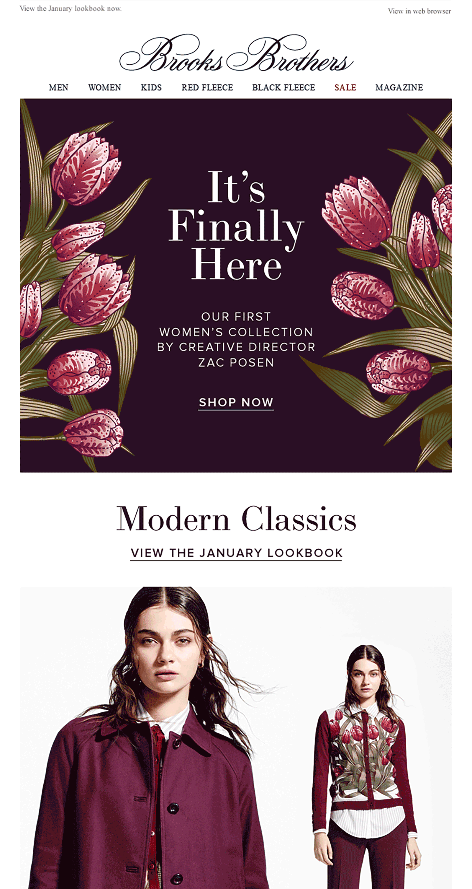 Emails were ramped up to target the female customer base and capitalize on the high interest in Zac’s work. We created motion within patterns to bring it to life and used short romantic copy to accompany.